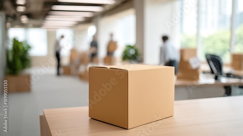 Bright and Modern Office Interior Featuring Unpacked Brown Boxes in a Contemporary Workspace Environment