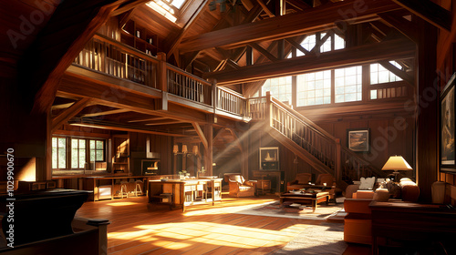 barn, conversion, home, high, ceiling, exposed, beam, sunlight, interior, design, rustic, architecture, wood, natural, light, roomy, cosy, living, room, staircase, furniture, warm, ambience, decoration, window, floor, wooden, structure, scenery, peaceful, inviting, atmosphere, elegance, charme, style, comfort, nature, environment, rural, traditional, modern, artistic, unique, craftsmanship, layout, detail, homelike