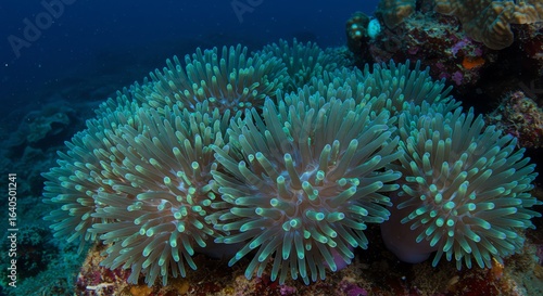 coral, reef, sea, anemone, blue, vibrant, colourful, underwater, marin, ocean, scenic, natural, realistic, depth, perspective, bright, dynamic, aquatic, habitat, environment, marine life, coral reef, ocean floor, diving, exploration, biodiversity, ecosystem, seascape, water, oceanic