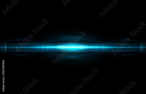 Bright blue light effect on black background, creating futuristic atmosphere. glowing lines and waves evoke sense of energy and motion