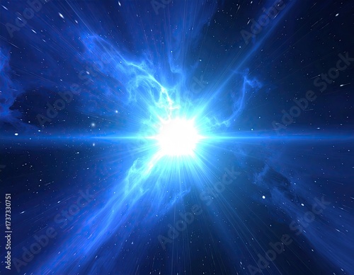 Bright celestial explosion in deep blue space
