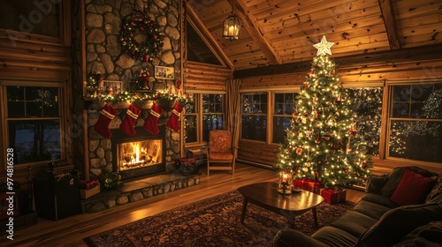 Bright Christmas tree lights illuminating a cozy room