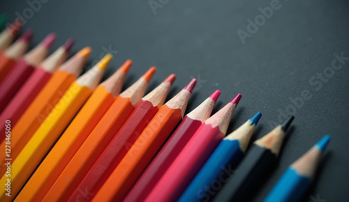 Bright Colored Pencils Aligned on Chalkboard with copy space