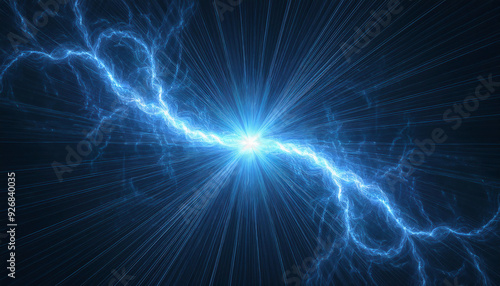Bright flashes and energetic bursts from a lightning strike set against a solid dark blue backdrop