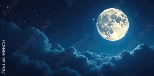 Bright Full Moon Glowing in a Starry Night Sky Stunning Cosmic Landscape Perfect for Fantasy and Mystical Projects