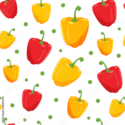 Bright juicy colorful peppers. Seamless pattern with vegetables. ecological, organic products. Concept of healthy eating. Design elements for packaging, banners, backgrounds, paper, textiles, fabrics