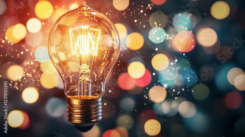 Bright Light Bulb Illuminating Bokeh Background for Inspiration