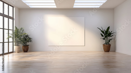 bright, minimalist, gallery, interior, blank, canvas, potted, plant, wooden, floor, skylight, natural, light, window, roomy, wall, modern, exhibition, empty, serene, indoor, decor, architecture, room, sunlit, minimalism, planter, foliage, contemporary, hardwood, open, white, clean, shadow, display, loft, tranquil, sunlight