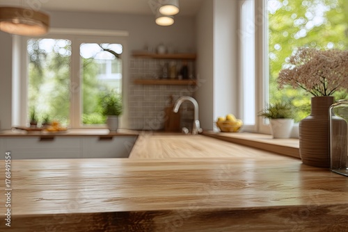 kitchen, modern, interior, home, house, clean, bright, light, natural, sunlight, window, view, green, plant, flower, vase, counter, countertop, wood, wooden, cabinet, shelf, shelf, sink, faucet, fruit, bowl, room, space, domestic, setting, domesticity, lifestyle, comfortable, cosy, inviting, serene, tranquil, peaceful, relaxing, simple, elegant, stylish, aesthetic, visual, composition, scene, dwelling, abode