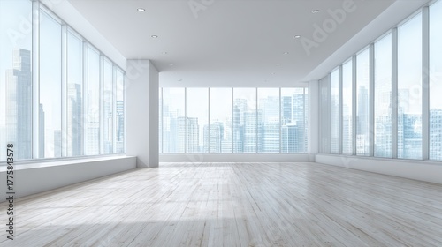 modern, office, space, empty, interior, design, light, bright, room, building, architecture, window, city landscape, skyline, view, urban, corporate, business, workspace, nobody, rendering, illustration, clean, simple, contemporary, real, estate, commercial, property, investment, background, panorama, structure, indoor, apartment, loft, showroom