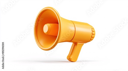 Bright Orange Megaphone Isolated on White Background with 3D Realistic Design