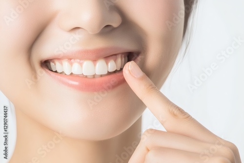 smile, teeth, woman, happiness, health, beauty, confidence, joy, dental, care, lifestyle, portrait, facial, expression, grooming, aesthetic, positivity, personal, skin, femininity, interaction, finger, gesture, wellness, radiant, appearance, oral, hygiene, emotion, youthful, chic, soft, charme, generative, ai