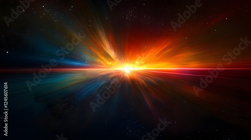 Bright star burst in the night sky with vibrant quasar effects radiating across a dark expanse