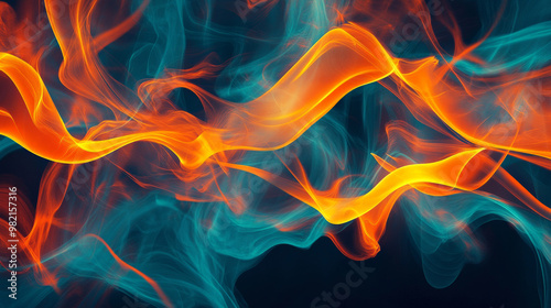 bright, streak, neon, orange, cyan, smoke, twirling, swirl, creating, energetic, abstract, background, vibrant, flowing, colours