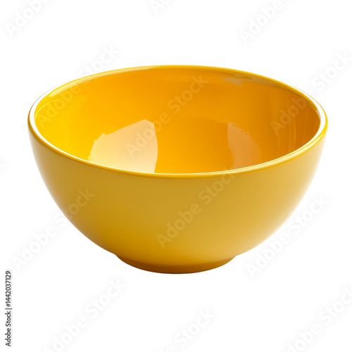 Bright yellow bowl placed on a clean transparent background perfect for kitchen decor or dining table settings, yellow bowl on transparent background