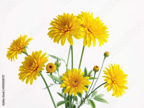 Bright yellow chrysanthemum flowers against a pure white background, nature, , sunny