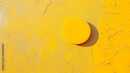 Bright yellow circular object against a textured yellow wall in sunlight.