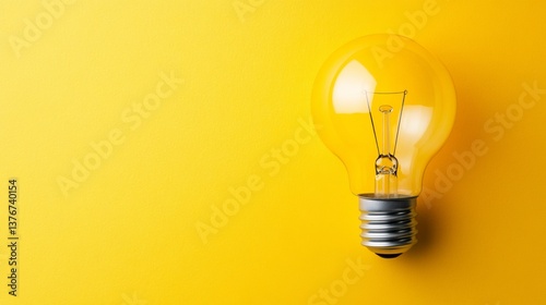 Bright yellow light bulb on solid background for creative concept