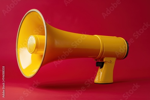 loudspeaker, megaphone, announcement, public, address, voice, sound, communication, marketing, advertising, promotion, broadcast, message, news, information, event, rally, protest, speech, speaker, audio, yellow, red, background, studio, product, object, equipment, tool, technology, media, concept, idea, attention, alert, warning, call, action, powerful, vibrant, bold, bright, colourful, graphic, illustration, photo
