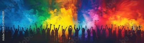 Brightly colored powder is being thrown into the air by people, banner, copy space