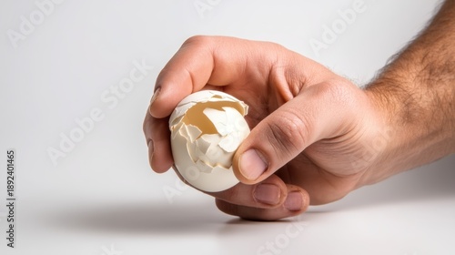 eggshell, damage, transition, fragility, human hand, closeup, minimalism, vulnerability, change, symbol, concept, white background, delicate