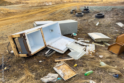 refrigerator, broken, refrigerator, recycling, discarded, waste, environmental, pollution, rusted, debris, junk, garbage, appliance, disused, damage, disaster, repair, technology, reusing, ecology, sustainability, enviroment, roadside, landfill, urban, rural, rust, mud, tire, abandonment, hazard, cleanup, aftermath, climate, impact, trash, safety, disposal, decay, nature, conservation, awareness, industrial, recovery, resilience, crisis, white