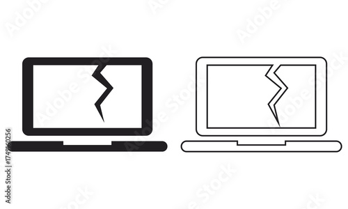 Broken laptop monitor icon. Isolated on white background . Vector illustration. EPS 10