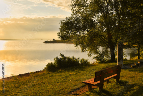 see, bench, water, nature, heaven, tree, countryside, autumn, park, sea, flux, grass, sunset, view, forest, seat, wooden, forest, travel, green, assured, picnic, duck pond
