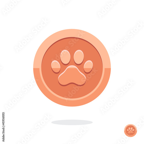 Bronze game coin. Coin icon. Bronze medal. Coin with the paw. Graphic user interface design element. Gold paw. Paw print. Imprint animal paw. Animal competition. Reward. Imprint animal. Money symbol.