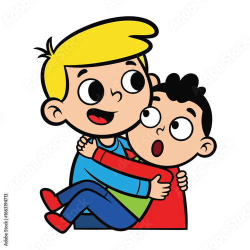 brotherhood, comfort, support, friendship, boy, caring, hugs, affection, cartoon, companionship, connection, love, care, young, children, boy, hug, assisting, close, mutual, supportive, human relationships, brother, adorable, helping, safe, warm, protecting, childhood, innocent, kind, togetherness, secure, buddy, pals, mate, children, children, human, person