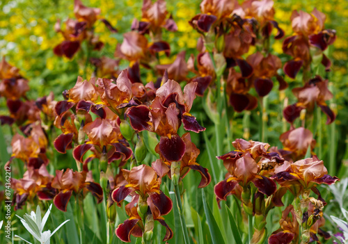 Brown and yellow multicolor flowers of iris brown and yellow multicolor flowers of irises bearded BRASIER
