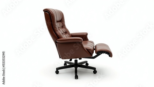 chair, recliner, leather, brown, footrest, office, furniture, comfortable, seating, adjustable, modern, contemporary, executive, back, padded, wheel, swivel, ergonomic, relaxation, home, workspace, comfort, support, sophisticated, quality, craftsmanship, armrest, backrest