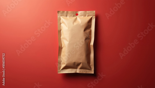 package, pouch, bag, paper, brown, empty, isolated, red, background, sealed, product, branding, food, snack, hot drink, tea, spice, herb, seed, organic, natural, eco, cardboard box, design, template, container, gift, retail, storage, sample, small, flat, simple, clean, minimalist, craft, pouch, clearance, sale