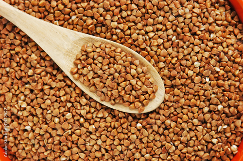 buckwheat groats and wooden spoon