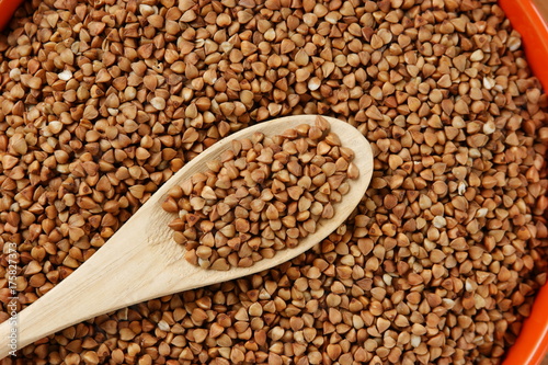 buckwheat groats and wooden spoon