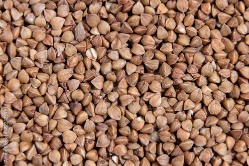 Buckwheat porridge. Natural healthy food, culture, close up, vegan diet. Close. Buckwheat groats.
