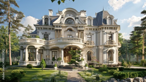 elegant, luxury home, ornate, architectural, detail, surround, lush, garden, tree, clear, live, view, modern, estate, market, comfort, urban, beauty, suppressing, furnish, attracted, fixture, realism, front, brick