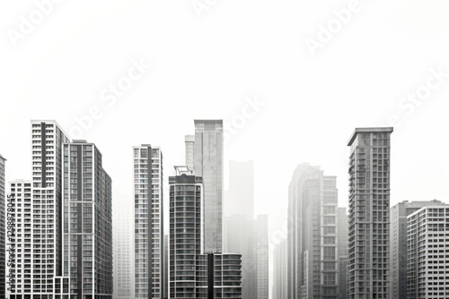building, architecture, city, landscape, city landscape, line, sky, housing, skyscraper, office, vignetting, white, photo, fog, downloadable, realistic, graphic, skyline, development, digital artwork, outdoors, image, high, rise, town, building exterior, hi-res, copy space, metropolis, monochrome, city life, isolated, urban, haze, mist, hd, condo, residential area, financial district, binnenstad, built structure
