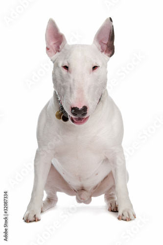 bull terrier, dog, pet, white background, studio, mammal, canino, purebred, k9, animal, white, studio shot