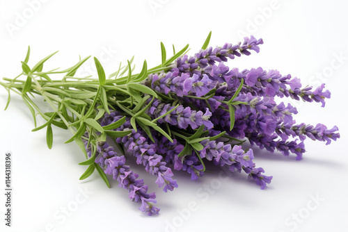 Bunch of Fresh Lavender Sprig Isolated on White Background with Purple Flowers.