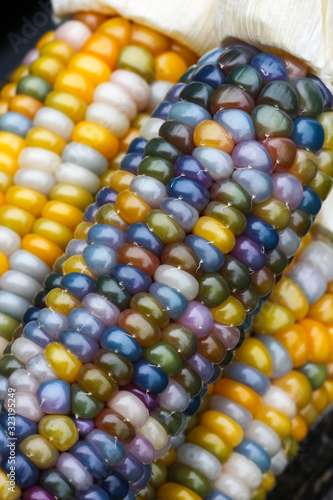 Bunter Glasgemcorn, ein fantastischer Regenbogenmais, mit super bunten glasperlenartigen Saatkörnern