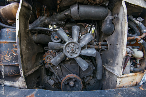 burned old van engine bathroom