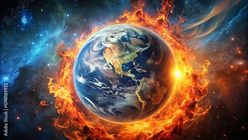 climate change, global warming, abstract art, space, environmental impact, nature, planet, fire, smoke, star, galaxy, urgency, awareness, futuristic, surreal, visualisation, ecology, crisis, destruction, beauty, element, vivid colors, dark background, cosmic, atmospheric, energy, warning, pollution, sustainability, environment, photo, artistic, concept, design, illustration, graphic, impact, heat, devastation, nature conservation, imagination, creative, visual arts, storytelling
