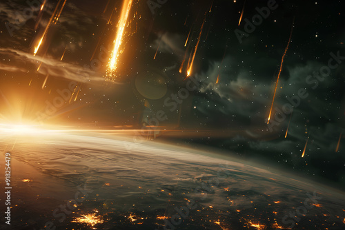 Burning meteor, meteorite falling in outer space, asteroid falling to earth, 3d rendering, generative AI