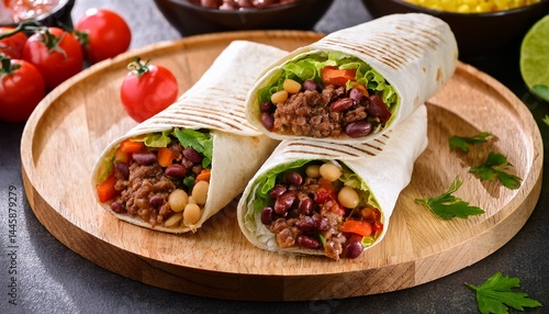 burritos wraps with mincemeat beans and vegetables