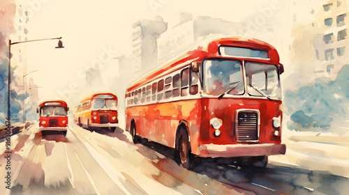 Buses Watercolor Style