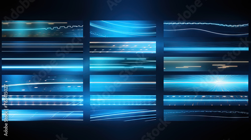 Business abstraction with infographics style data blocks in blue glowing lights.