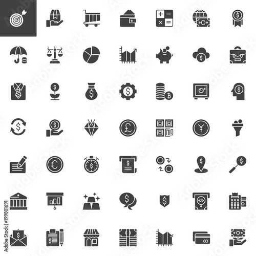 business, finance, icon, set, collection, pack, solid, filled, glyphs, vector, element, logotype, pictogram, flat, symbol, signs, web, illustration, pixel, honed, simple, editable, graphic, goal, target, aim, success, shopping, cart, billfold, calculating machine, credit, card, protection, dollar, shield, scale, chart, profit, exchange, baby pig, growth, bag, cogwheel, refund, diamond, pound, cheque