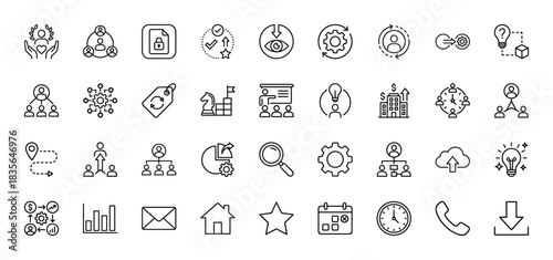 business, icon, vector, set, line, management, finance, strategy, outline, pictogram, development, planning, startup, organisation, teamwork, administration, people, datum, analysis, setting, process, project, solution, security, chart, report, research, success, target, objective, calendar, time, phone, mail, graph, home, star, cloud, download, upload, minimal, illustration, symbol, collection, editable, thin, isolated