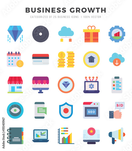 Business Growth icons set. Collection of simple Flat web icons.
